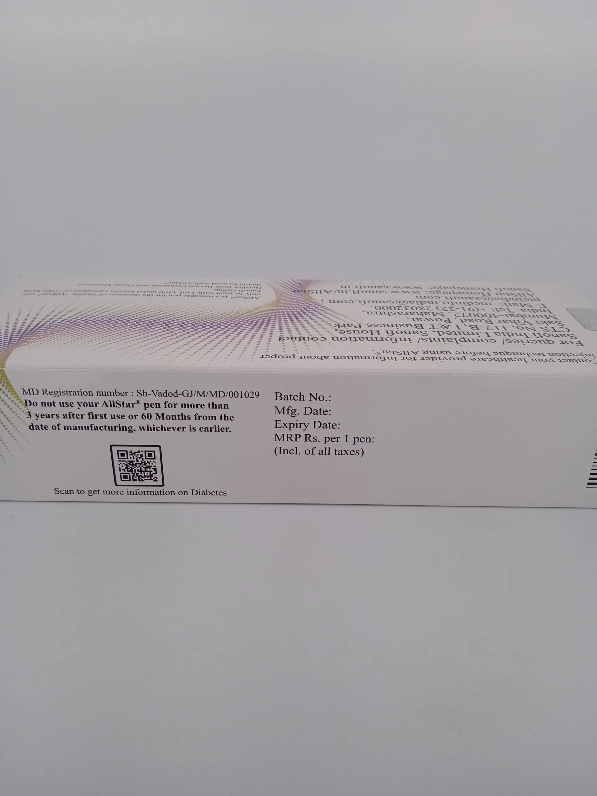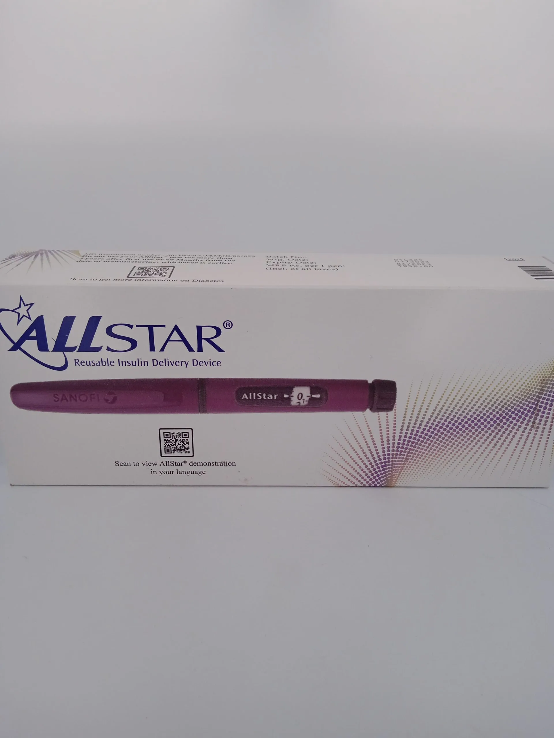 The ALLSTAR PEN DEVICE is a high-quality, reusable insulin injection pen created for diabetes patients requiring regular insulin therapy. The pen is compatible with various insulin cartridges and features a clear dosing system for accuracy. Its ergonomic design makes it easy to handle, ensuring a comfortable injection experience. The ALLSTAR PEN offers reliable performance for long-term use, making it an essential tool for effective diabetes management.