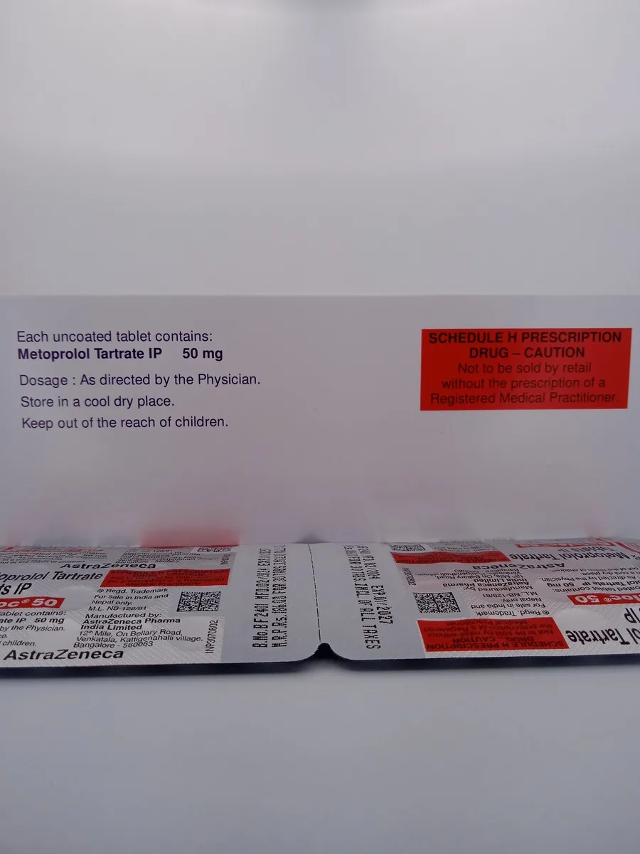 BETALOC 50 MG works by selectively blocking beta-1 adrenergic receptors in the heart. This reduces the heart rate and the force of contraction, thereby lowering blood pressure and reducing the heart’s oxygen demand. By decreasing myocardial workload, it helps in managing high blood pressure and improving heart function.