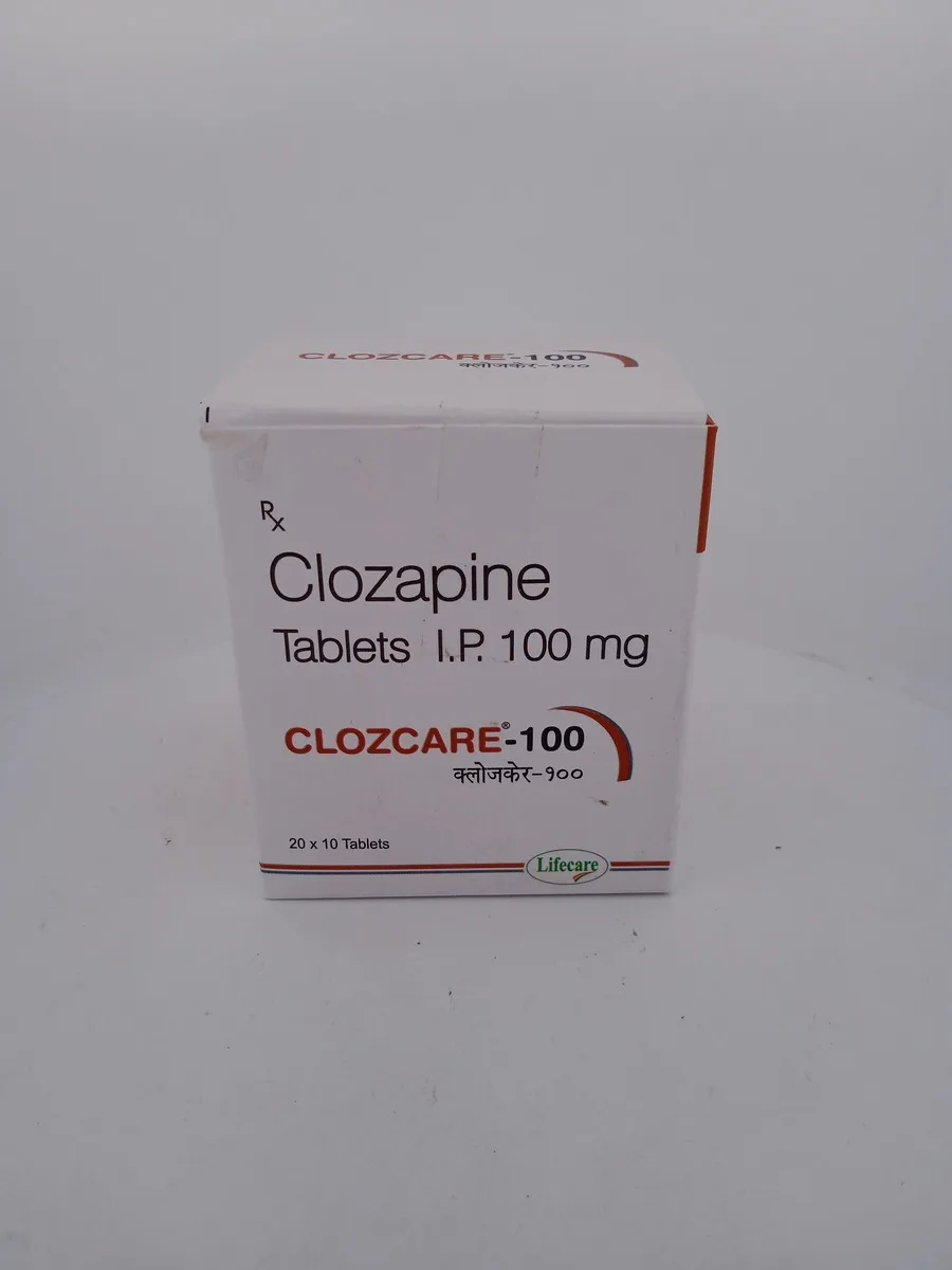 CLOZCARE 100 MG contains Clozapine, an atypical antipsychotic medication primarily used to treat schizophrenia in patients who do not respond well to other treatments. It helps control hallucinations, delusions, and improves mental clarity and mood. By restoring the balance of neurotransmitters in the brain, CLOZCARE 100 MG improves quality of life for those with severe mental disorders.