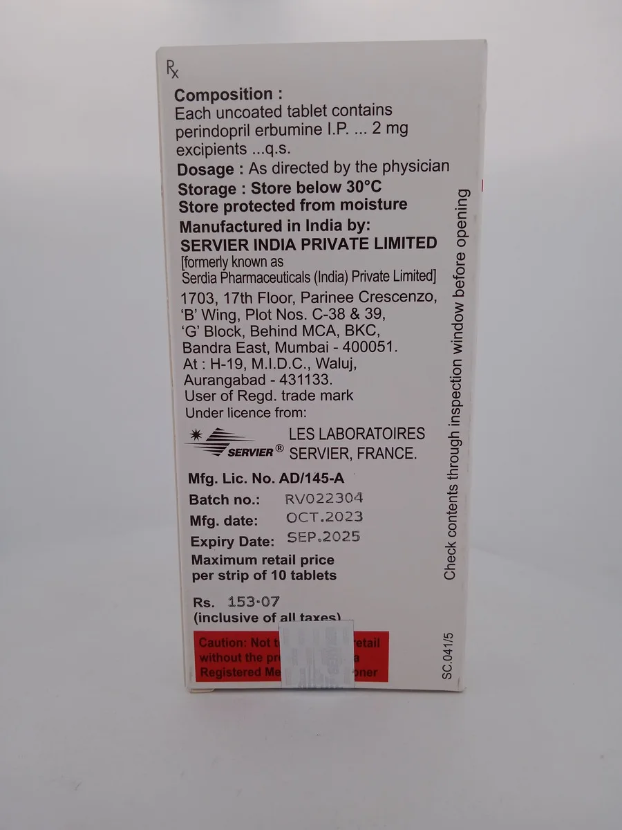 COVERSYL 2 MG contains perindopril, an angiotensin-converting enzyme (ACE) inhibitor. By inhibiting the conversion of angiotensin I to angiotensin II, it effectively relaxes blood vessels, lowering blood pressure and easing the workload on the heart. This medication supports overall cardiovascular health while preventing serious complications such as heart attacks and strokes.