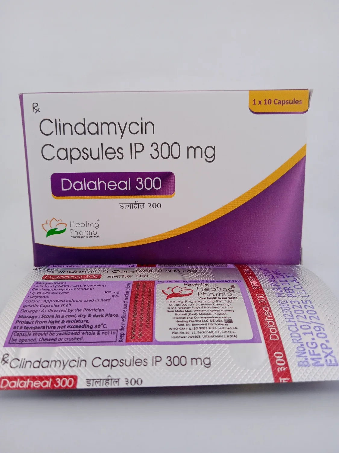 DALAHEAL 300 MG 300mg Capsule is an antibiotic medicine that fights bacteria and is used to treat a variety of bacterial infections. It is effective in infections of the lungs (e.g., pneumonia), throat, stomach, skin and soft tissues, bones and joints, and teeth. DALAHEAL 300mg Capsule works by stopping the growth of bacteria. This helps to improve your symptoms and cure the underlying infection.