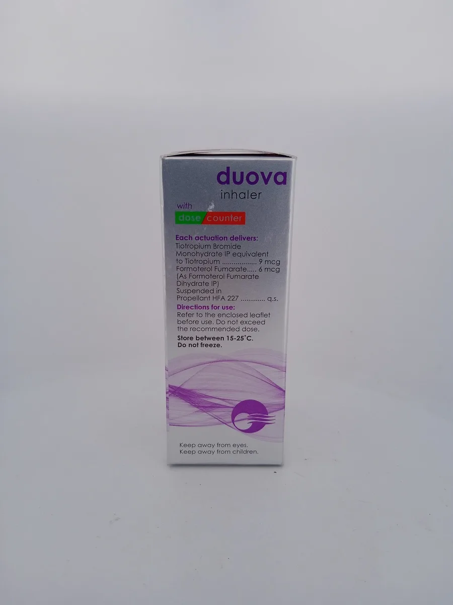 DUOVA INHALER is a prescription medication used to manage and alleviate symptoms of asthma and chronic obstructive pulmonary disease (COPD). Combining two potent bronchodilators, it offers effective relief from breathing difficulties and promotes easier airflow.