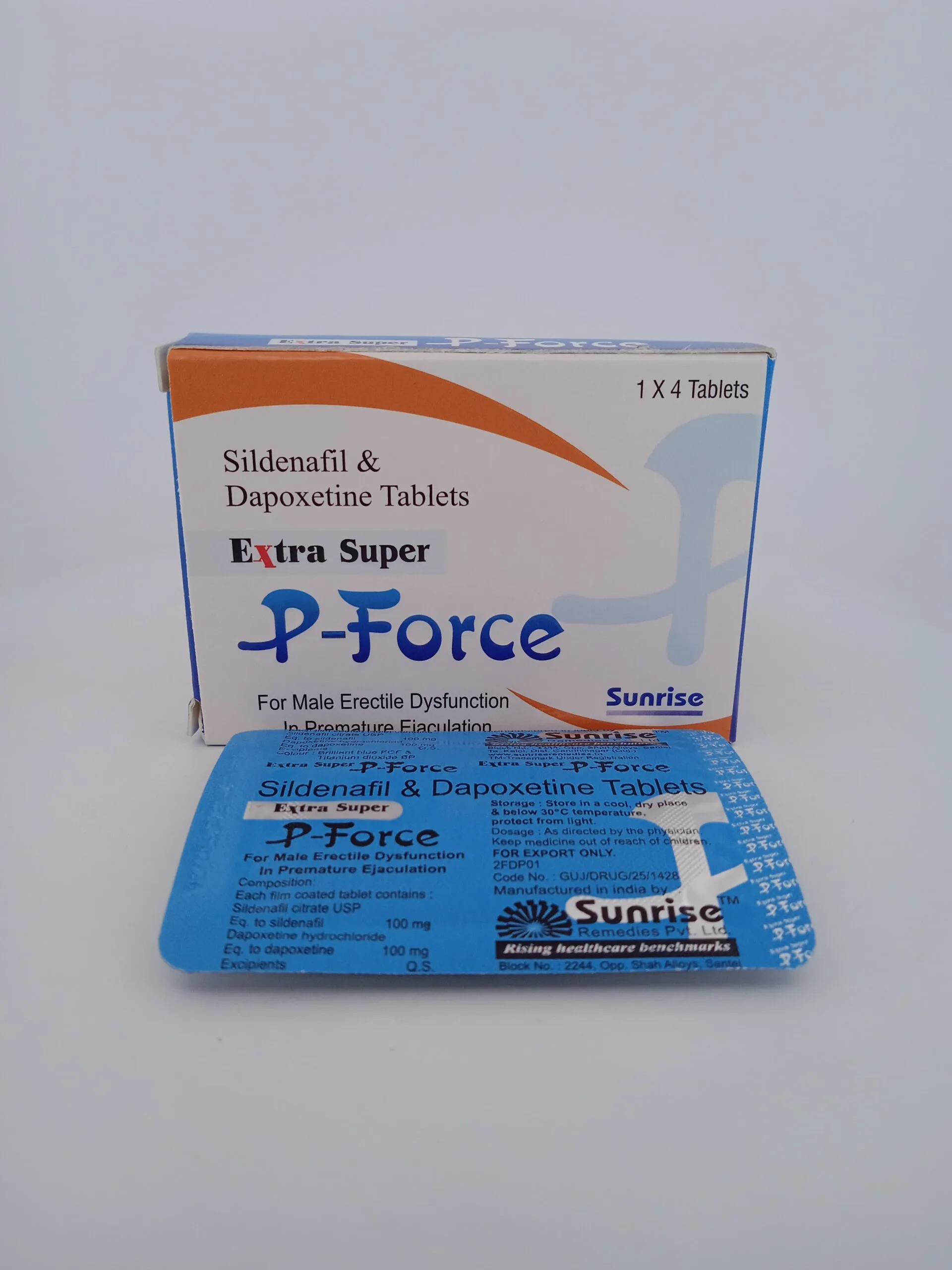 EXTRA SUPER P-FORCE is a powerful medication designed to address both erectile dysfunction (ED) and premature ejaculation (PE). With its dual-action formula, it helps improve sexual performance, extend duration, and enhance overall satisfaction.
