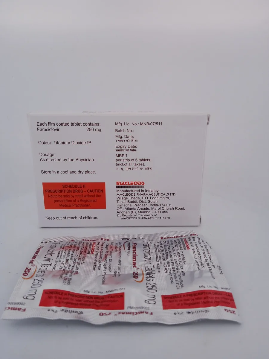FAMCIMAC 250 MG is a highly effective antiviral medication containing famciclovir. It’s designed to manage viral infections, particularly those caused by the herpes simplex virus, offering relief from symptoms and reducing the frequency of outbreaks.