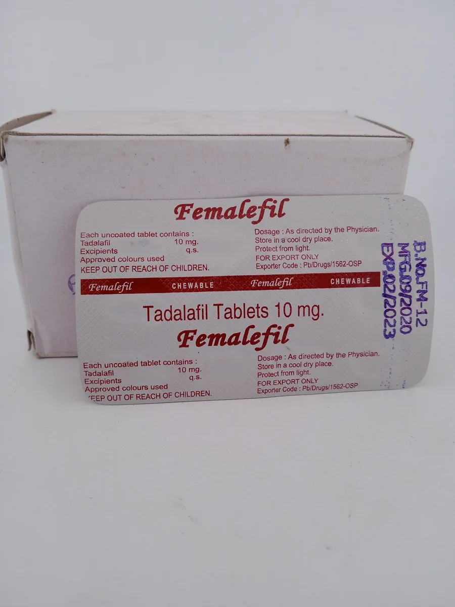 FEMALEFIL 10 MG contains Tadalafil 10mg, a potent PDE5 inhibitor that increases blood flow to the genital area, enhancing arousal and sexual satisfaction in women. This medication is specifically designed to improve sexual function, making intimate moments more enjoyable. With its reliable efficacy and long-lasting effects, FEMALEFIL 10 MG is a trusted solution for female sexual wellness.