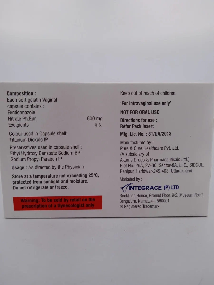FENZA Vaginal Capsule provides targeted antifungal treatment directly at the site of infection. It effectively manages symptoms and clears vaginal fungal infections, such as candidiasis, providing relief from discomfort and promoting vaginal health.