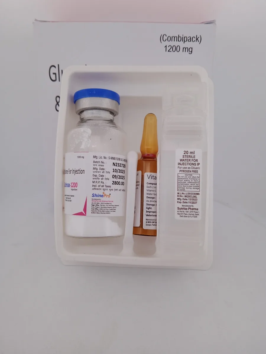 Usage Instructions: GGlutimax 1200 Injection is administered by a qualified healthcare professional through intravenous infusion. Follow the recommended dosage and administration schedule provided by your healthcare provider for optimal results.
