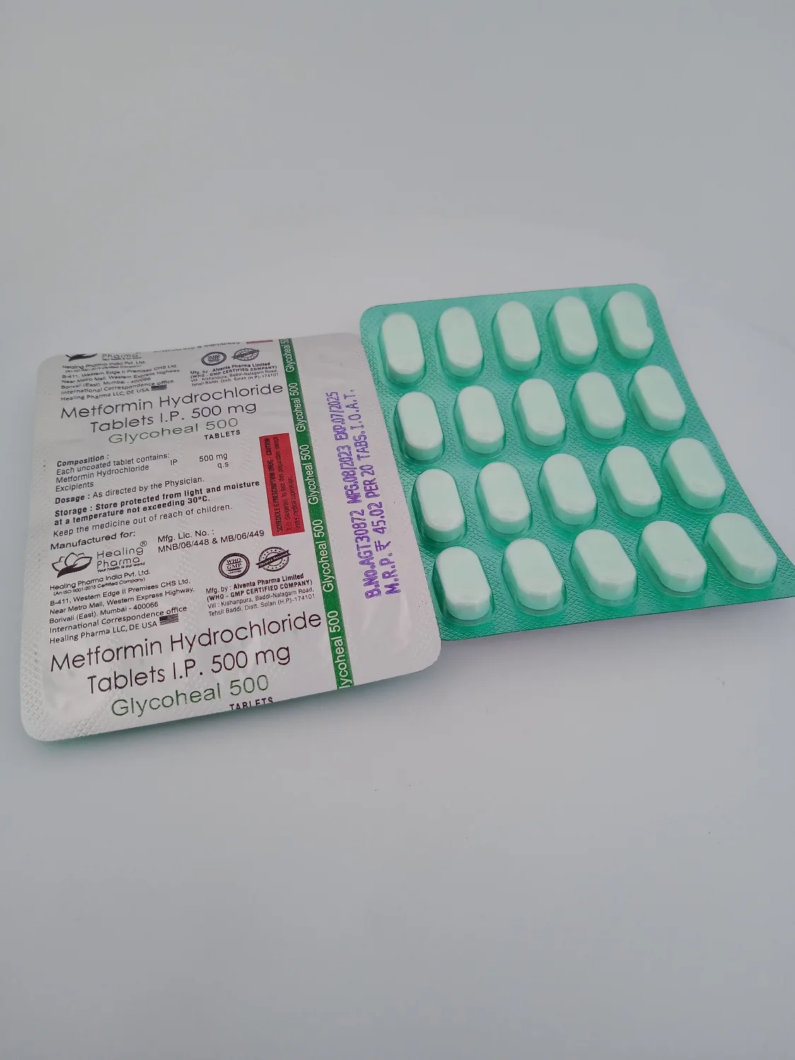 GLYCOHEAL 500MG is a medication containing Metformin Hydrochloride 500mg, designed to manage diabetes effectively. It helps regulate blood sugar levels and improves insulin sensitivity for better glucose control. GLYCOHEAL 500MG, with Metformin Hydrochloride as its active ingredient, is a trusted medication for controlling diabetes. It works by decreasing the amount of glucose produced by the liver and enhancing insulin sensitivity in the body. This comprehensive approach helps in maintaining optimal blood sugar levels.