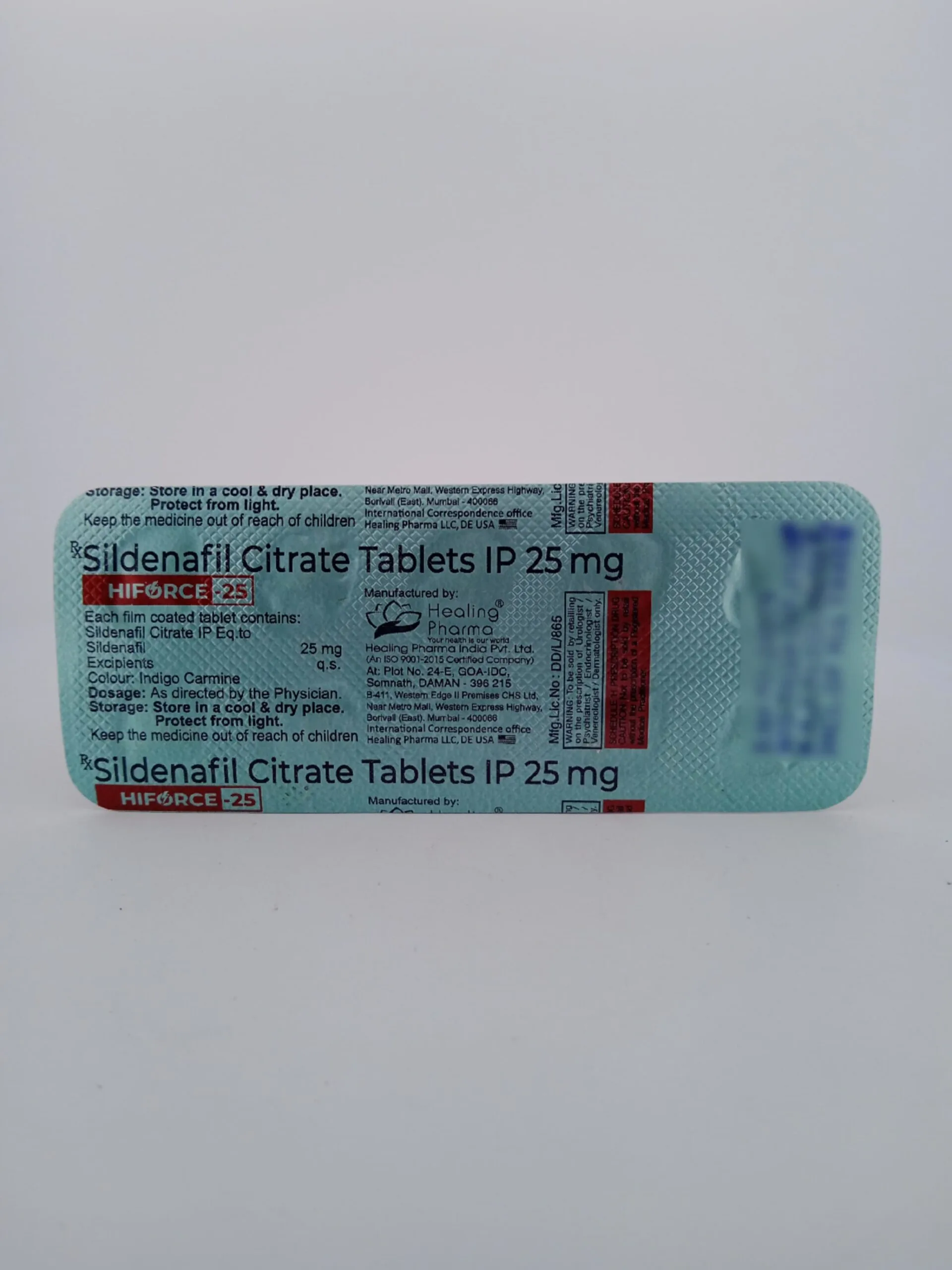 For best results, take HIFORCE 25 MG as directed by your healthcare provider. Avoid consuming alcohol or large meals before taking the medication, as these may affect its effectiveness. Consult your healthcare provider if you have underlying health conditions or if you experience any adverse effects.