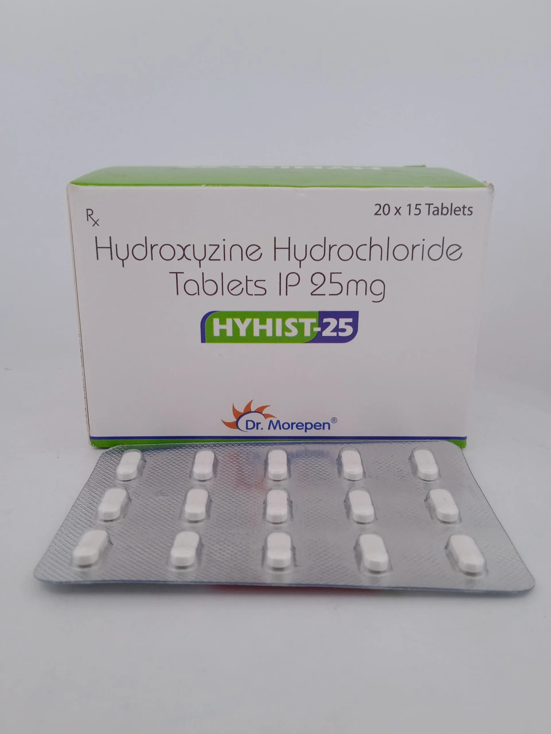 HYHIST 25 MG works by blocking histamine receptors and influencing pathways related to anxiety. This action helps reduce symptoms of anxiety and mitigates inflammatory responses in the skin, providing comprehensive relief.