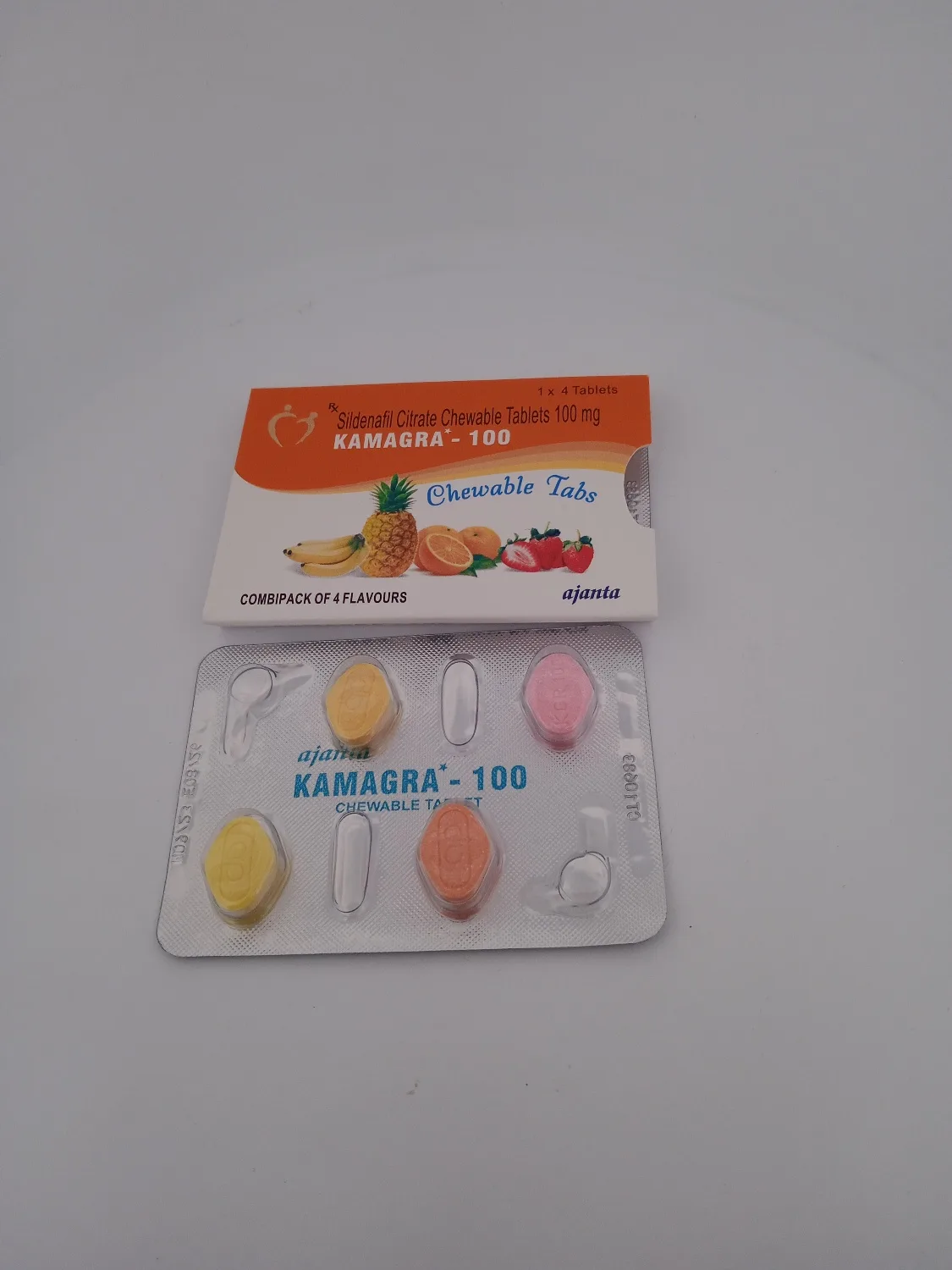 KAMAGRA 100 MG Chewable Tablets are designed to treat erectile dysfunction effectively. Each tablet contains 100 mg of sildenafil citrate, a potent ingredient that enhances blood flow to the penis, facilitating a firm and lasting erection. The chewable form ensures rapid absorption and ease of use, providing quick results when needed.