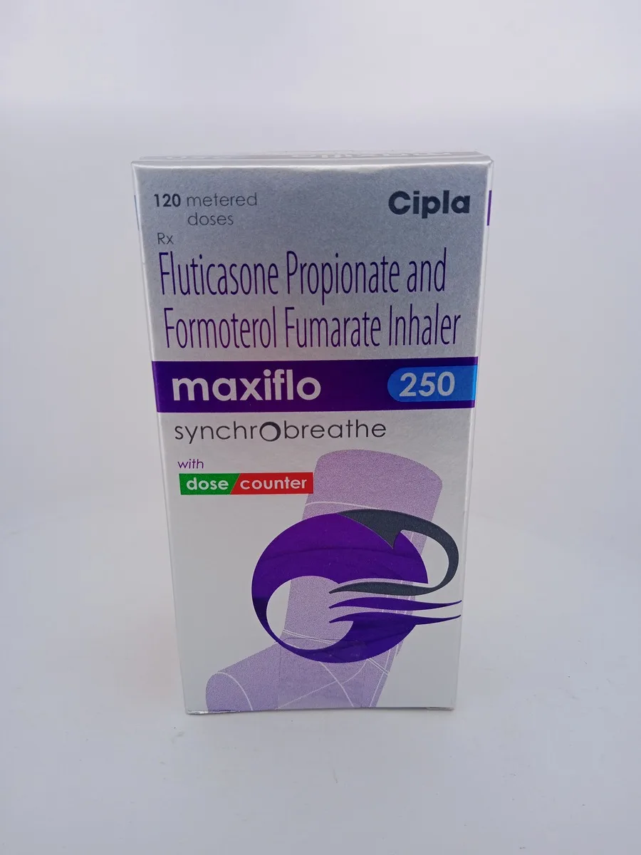 This dual-action formulation helps in managing asthma and COPD symptoms, preventing flare-ups, and improving overall respiratory function. Regular use of MAXIFLO 250 SYNCHROBREATHE INHALER provides comprehensive control of your condition.