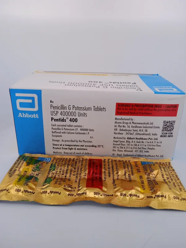 PENTIDS 400 MG is a potent antibiotic used to treat various bacterial infections, including syphilis, and to prevent rheumatic fever. It effectively combats bacterial growth, providing relief and prevention for different conditions.