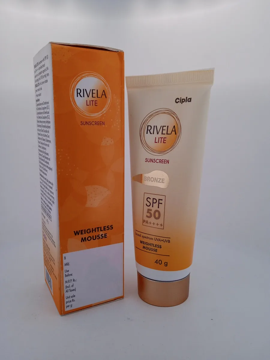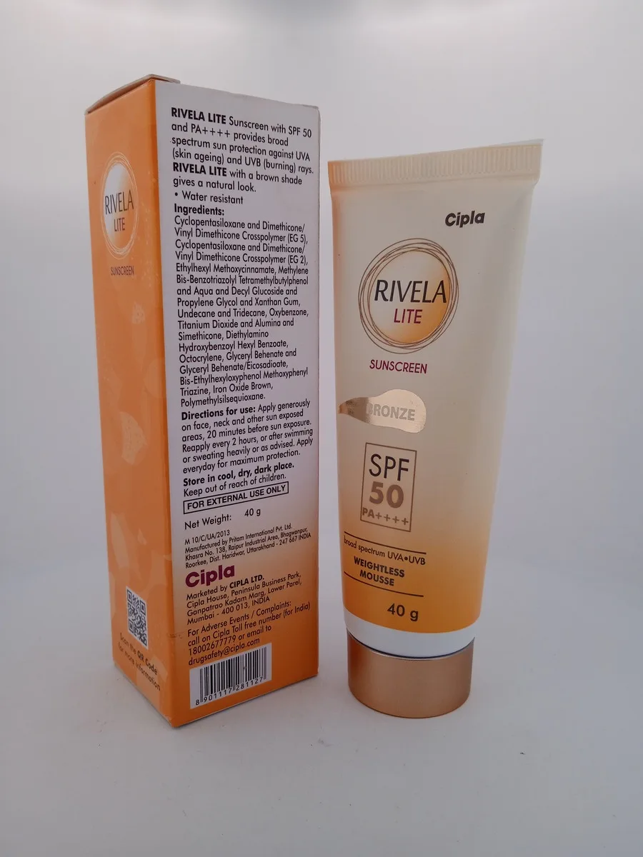 RIVELA LITE SUNSCREEN BRONZE offers a dual benefit of sun protection and a natural bronze tint. Formulated with high-quality sunscreen agents, it provides broad-spectrum protection against harmful UVA and UVB rays. The lightweight, non-greasy formula absorbs quickly, leaving your skin feeling fresh and hydrated. The added bronze tint gives your skin a radiant, sun-kissed appearance, making it perfect for everyday use or as a base for makeup.