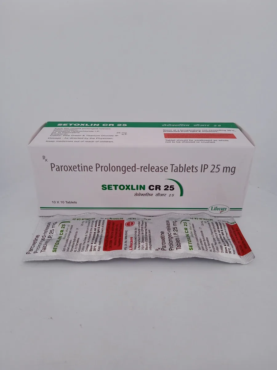 SETOXLIN CR 25 MG contains Paroxetine, a selective serotonin reuptake inhibitor (SSRI) that is effective in treating depression, anxiety disorders, and panic disorders. This medication enhances serotonin levels in the brain, improving mood and alleviating anxiety. The controlled-release (CR) technology ensures a gradual release of the active ingredient, providing sustained therapeutic effects and promoting overall mental health.