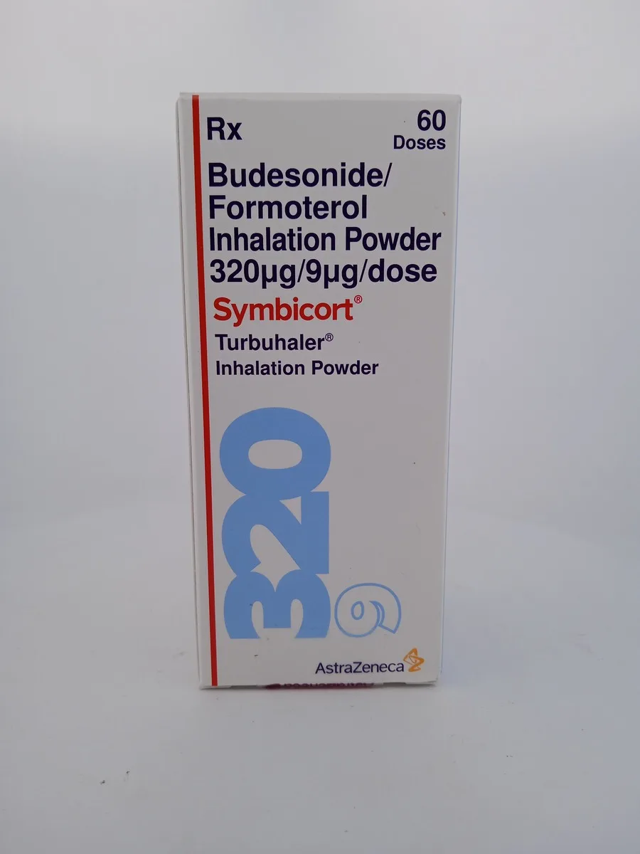 SYMBICORT TURBUHALER 320µg/9µg is a combination inhaler designed for the management of asthma and chronic obstructive pulmonary disease (COPD). It contains Budesonide, a corticosteroid, and Formoterol, a long-acting beta-agonist, providing dual-action relief for improved breathing and reduced inflammation.