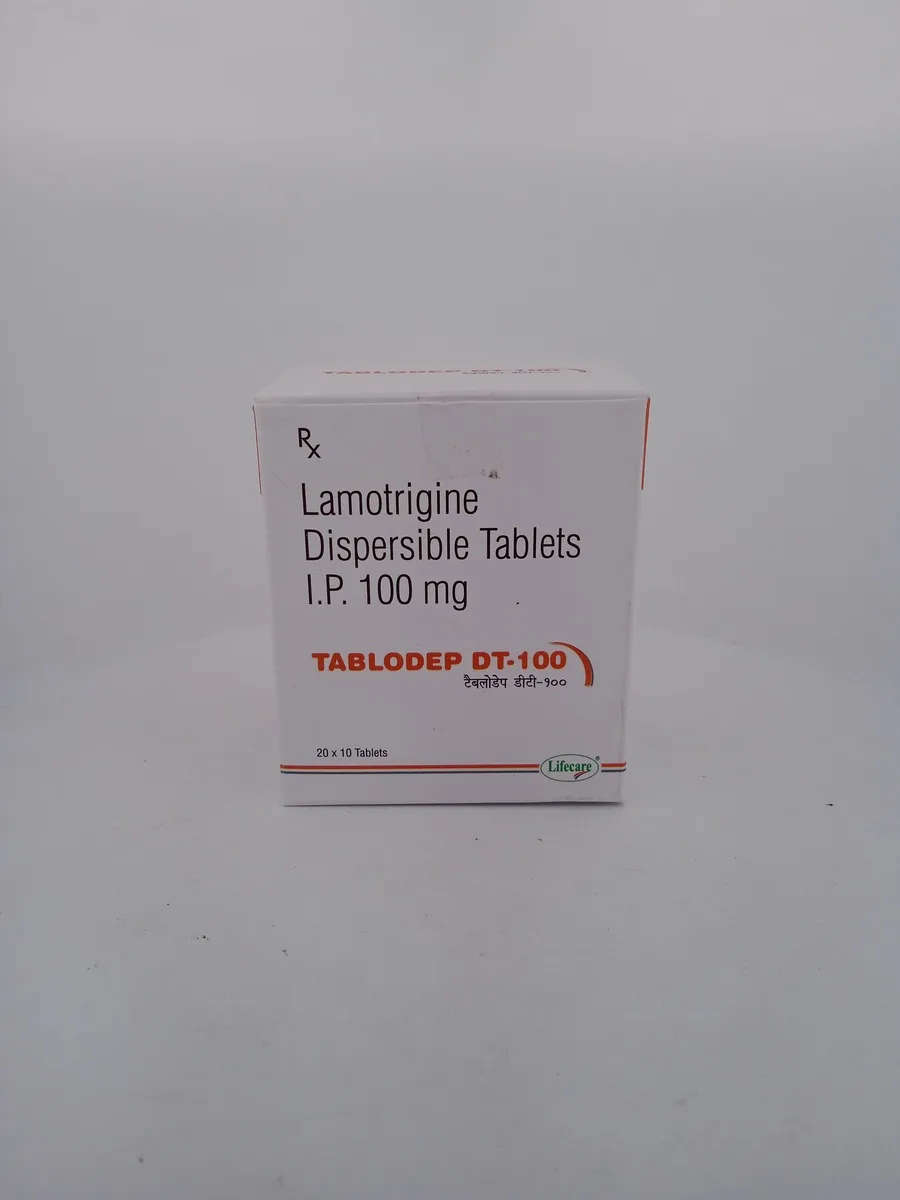 TABLODEP DT 100 MG contains lamotrigine, an anticonvulsant that stabilizes electrical activity in the brain. It is primarily used for managing epilepsy, reducing the frequency of seizures, and for the treatment of bipolar disorder by stabilizing mood fluctuations. The dispersible tablet formulation allows for easy administration, particularly for those who may have difficulty swallowing pills.