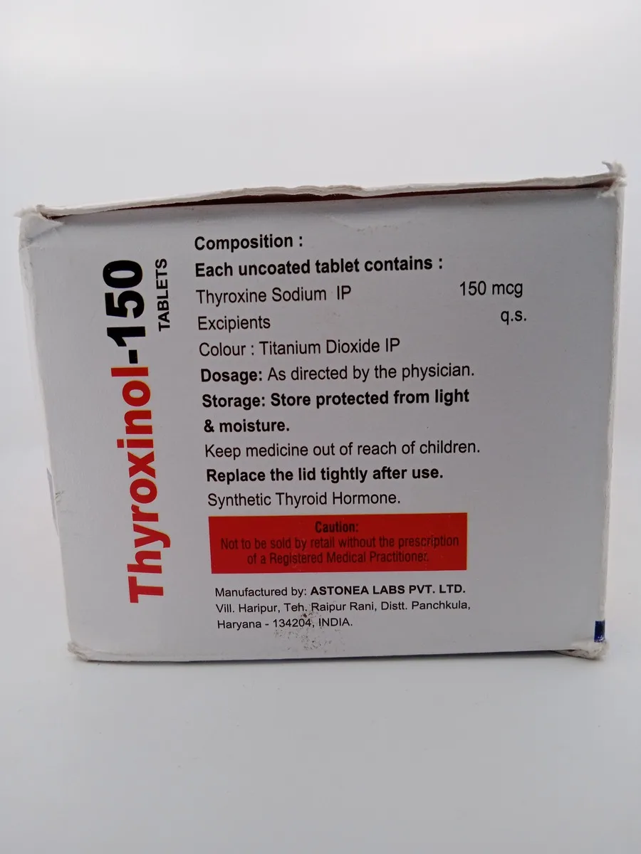 Storage Conditions: Store Thyroxinol 150mg in a cool, dry place away from direct sunlight. Keep the bottle tightly closed and out of reach of children to maintain its quality and potency.