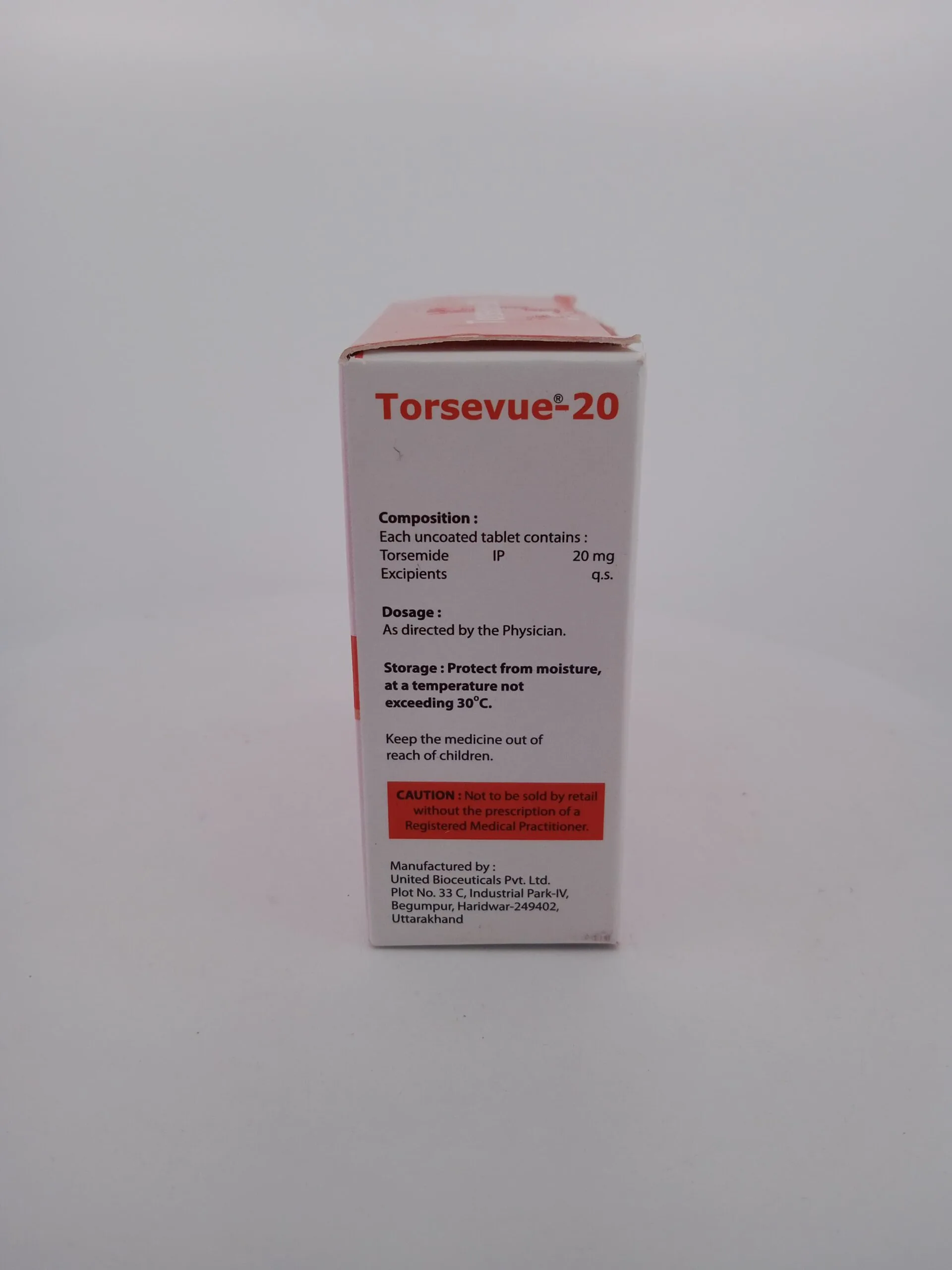 TORSEVUE 20 MG is a targeted medication designed to manage hypertension and alleviate edema. With its effective formulation, it helps lower blood pressure and reduce excess fluid retention, supporting overall cardiovascular health.